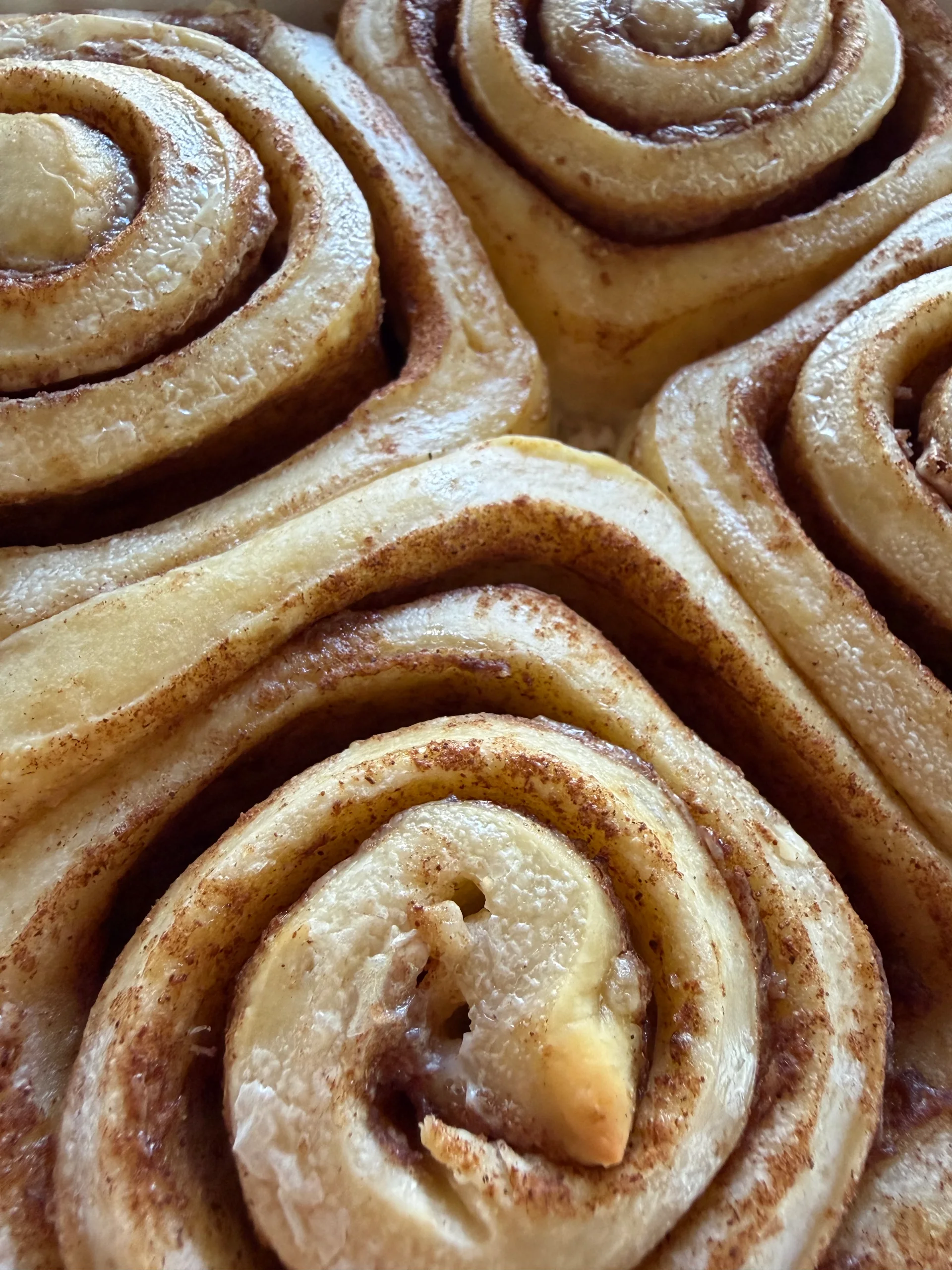 Slow fermented with starter, these cinnamon rolls are fluffy and golden and topped with a sweet cream cheese icing. Perfect for breakfast, dessert or anytime.
